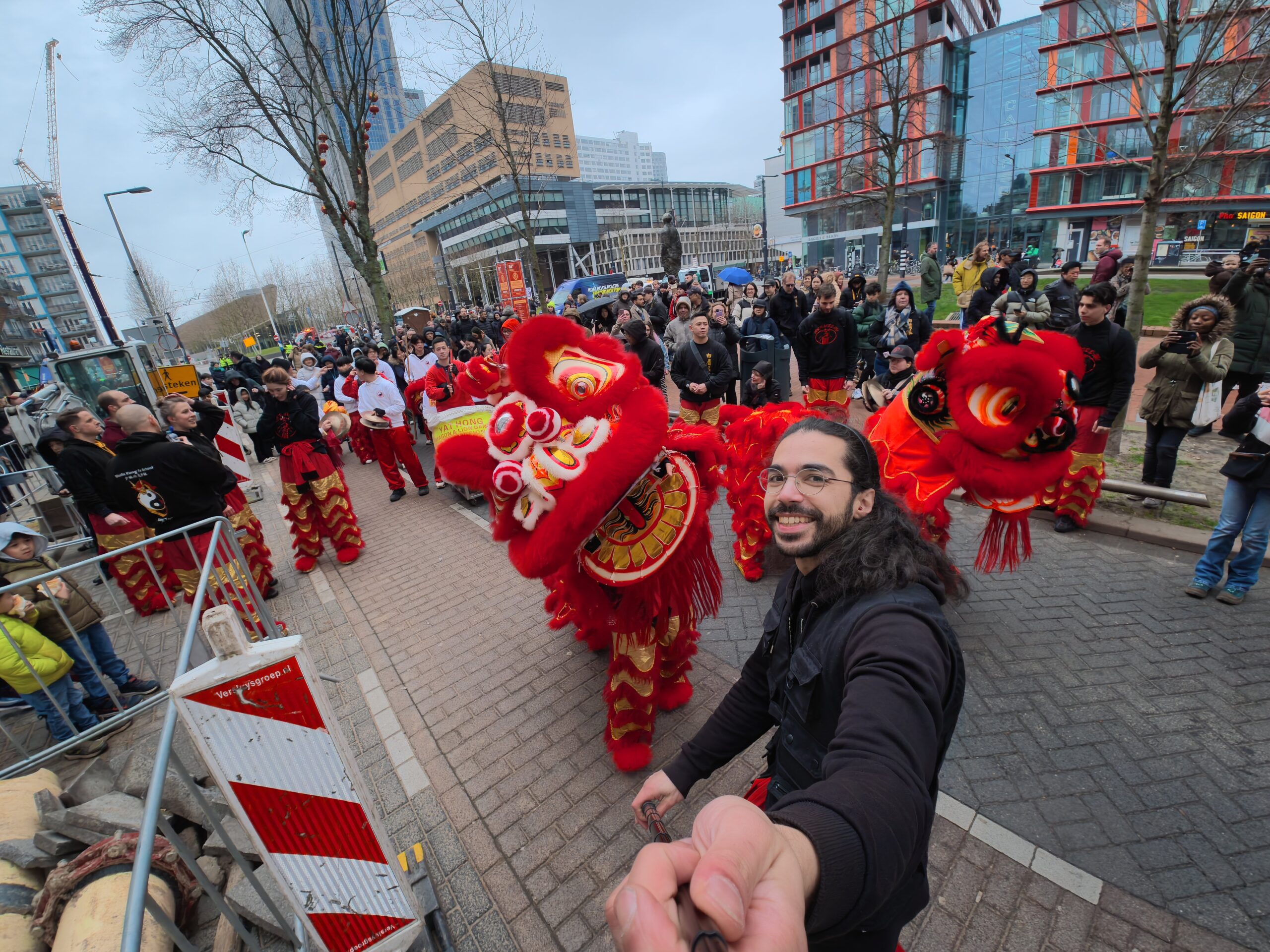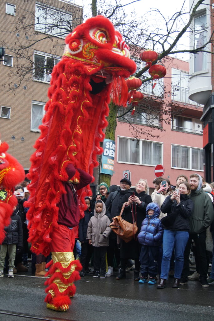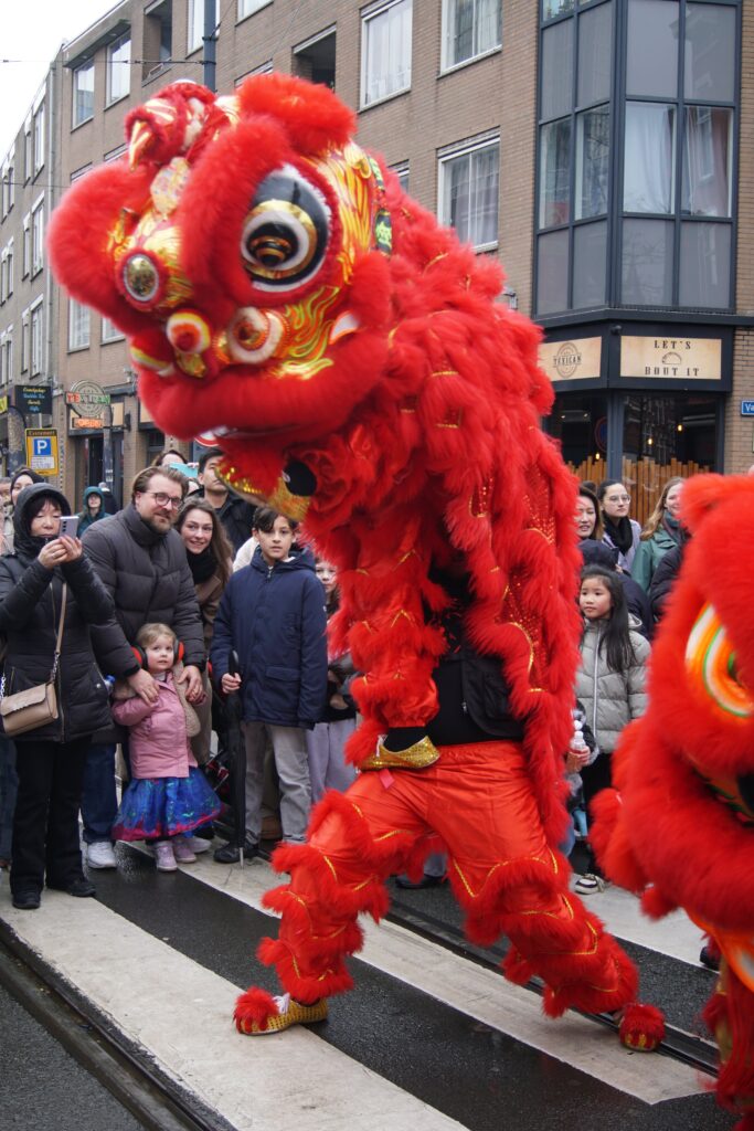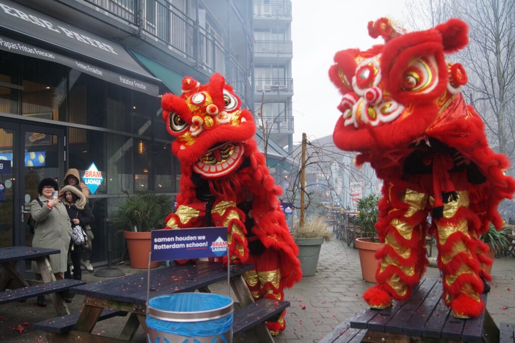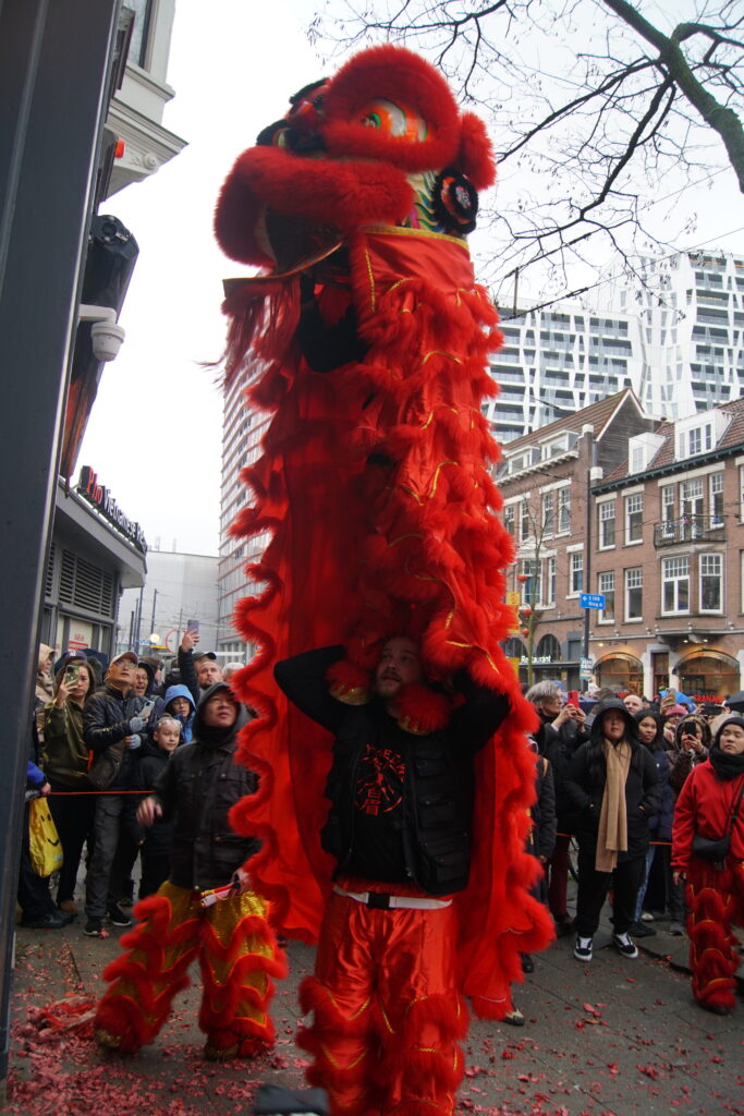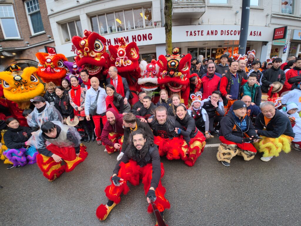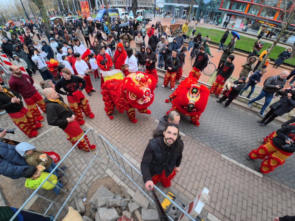 Op zaterdag 28 februari 2026 waren we in Rotterdam om samen met (namen andere kung fu scholen) het Chinees nieuwjaar te vieren. Een extra spannende viering dit jaar, omdat het regende en de leeuw van bamboe en papier-mâché is gemaakt. Gelukkig heeft de leeuw het goed gehouden en konden we onze taak uitvoeren, namelijk het verdrijven van boze geesten met behulp van de leeuwendans, vuurwerk, drums en luide muzikale percussie. Met het verdwijnen van de kwade geesten, komt er ruimte vrij voor goede energie. Op deze manier helpt de leeuwendans bij het inluiden van een gelukkig, gezond en voorspoedig nieuw jaar.