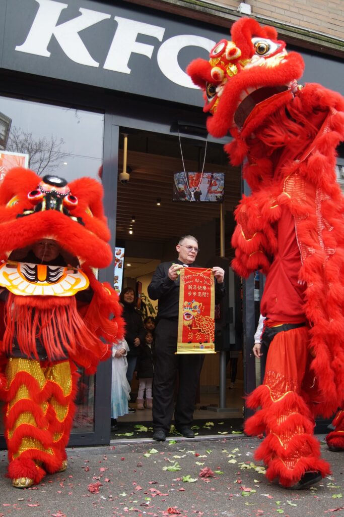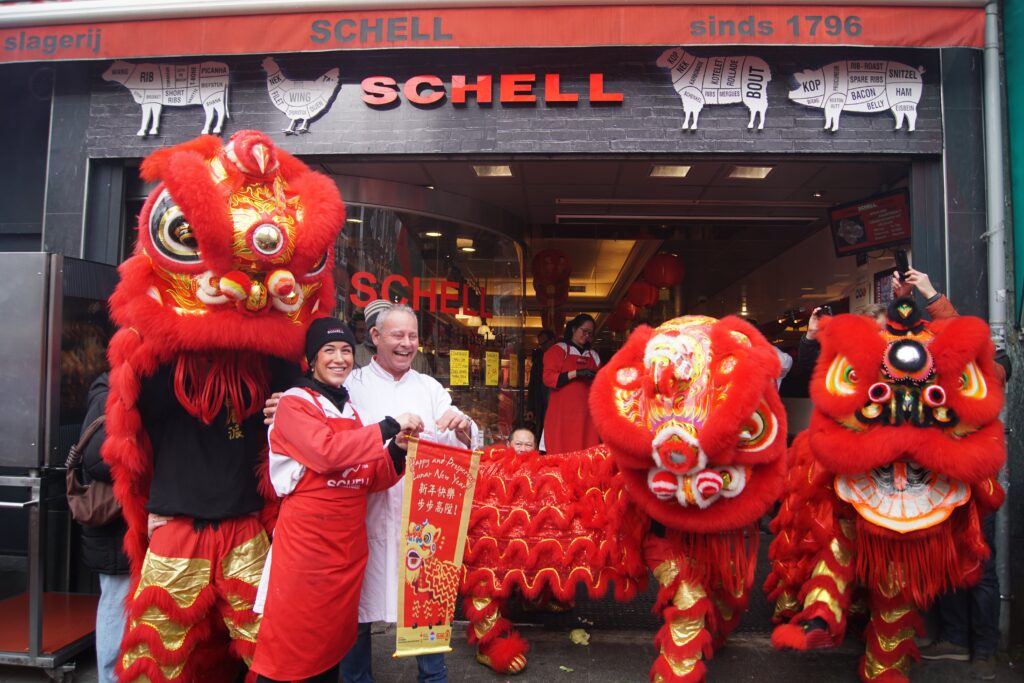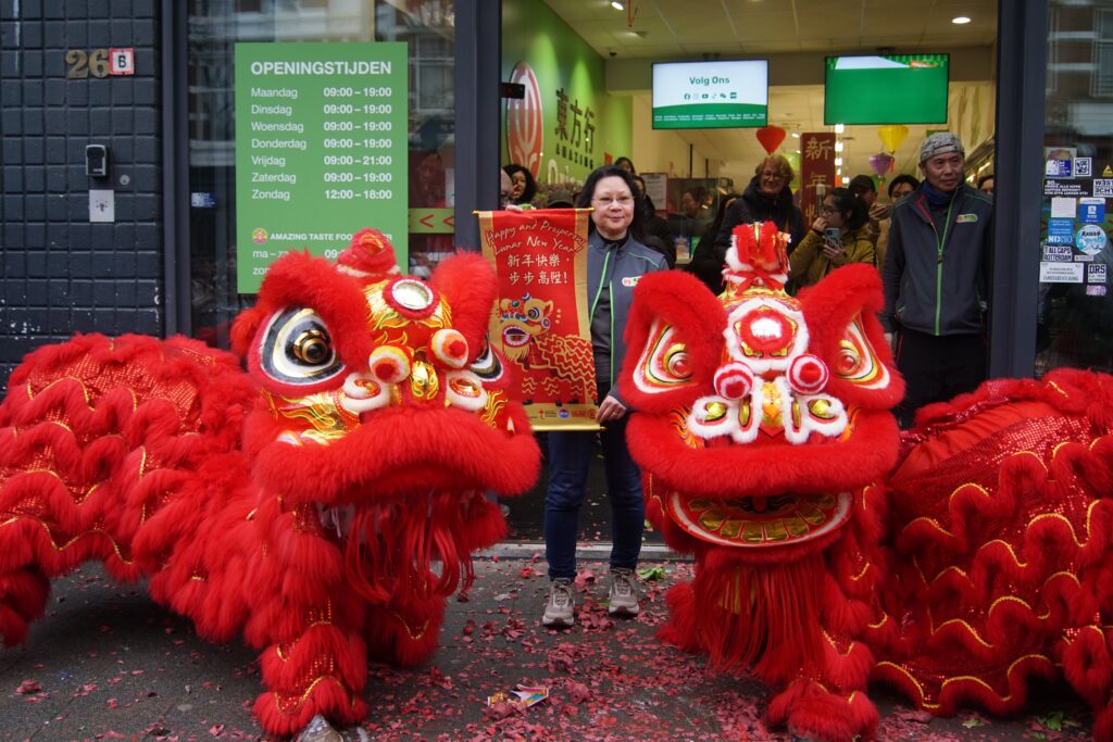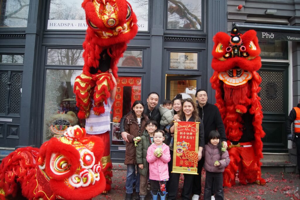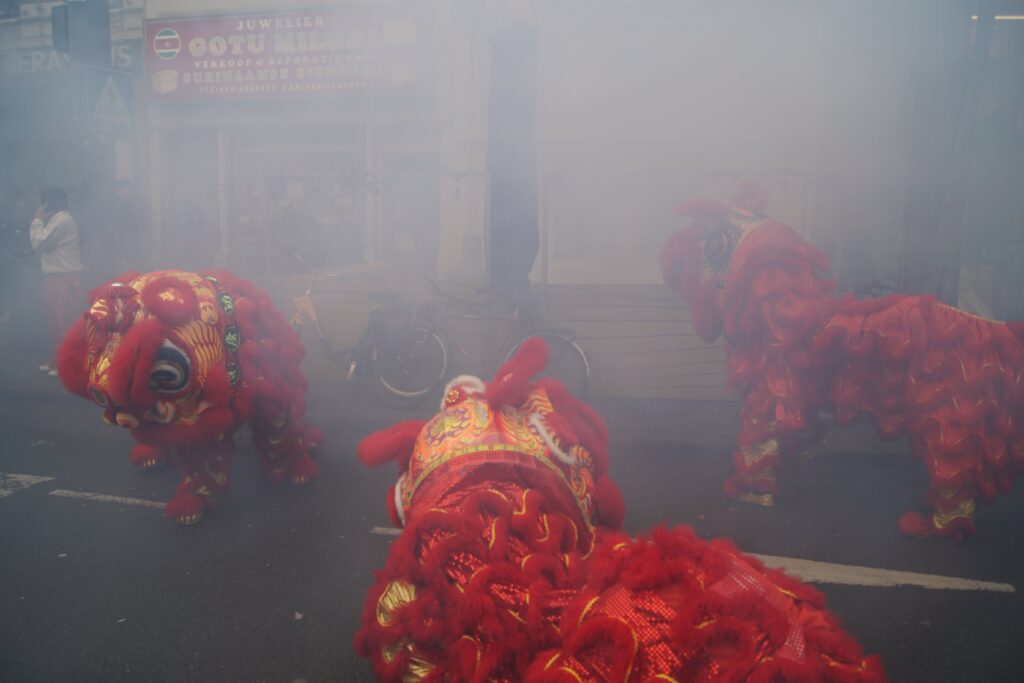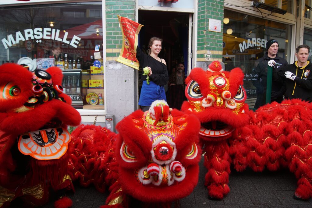 Saturday 28th of February, we joined (other Kung Fu schools’ names) to celebrate Chinese New Year in Rotterdam. An extra exhilarating celebration this year, since it was raining and our lion is made out of bamboo and paper. Fortunately the lion managed to brave the weather, enabling us to perform our duty to banish evil spirits through the use of fireworks, drums, loud percussion and of course, the lion dances. With the evil spirits gone, we’ve created space for good energy to come in. This is how the lion dance helps to bring in blessings for a healthy, fortunate and auspicious start to the new year.